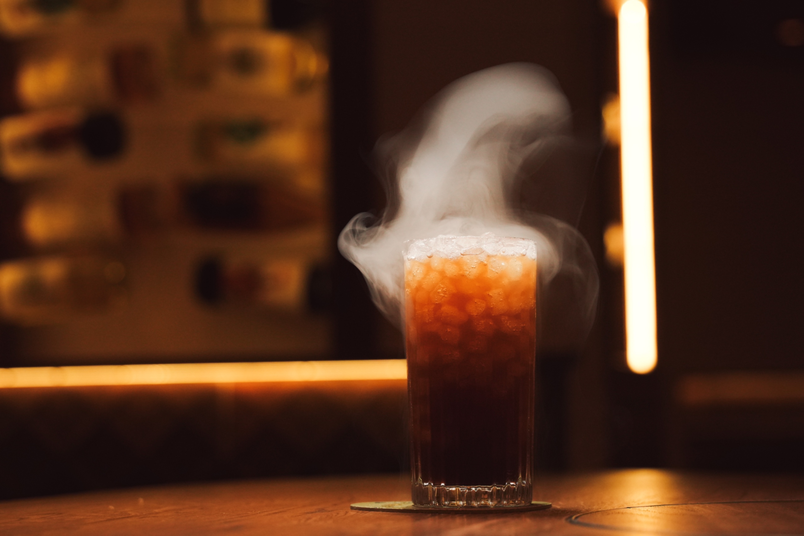 Or Mango Unchained, a golden twist on the Boulevardier, where ripe mango, turmeric, and bourbon meet in perfect balance.